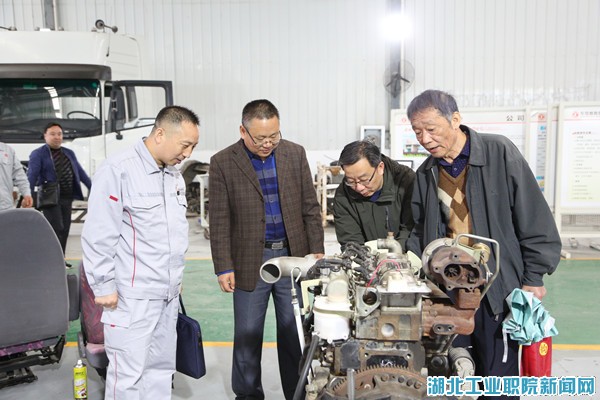 访谈结束后,王建清在tyc122cc太阳成集团经理张健、副经理赵艳杰的介绍下,来到了王涛老师指导建设的商用车实训中心,仔细察看了已建成的5台东风商用车实训台架,详细询问了实训台架的结构、技能训练点等情况,并对商用车实训中心建设水平、规范程度、训练项目给予了高度评价,表示愿意参与到该院商用车实训中心建设,共同打造校企融合的技能实训中心。在汽车拆装与调整实训车间,王建清看到员工的校本实训教材上记着详细的笔记,同学们在熟练地拆装发动机、变速器,对该院扎实的技能教学大加赞赏,称赞这才是职业教育应有的大课堂。