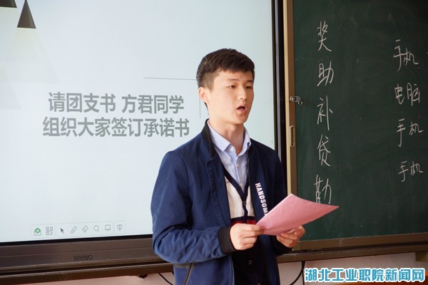 整场班会以现场直播的方式进行。主讲老师曲杉从现场提问和前期校园关于“消费”的调研视频开始,引导员工要树立正确的消费观念,不要盲目攀比,不要超前消费,不要迷恋网络赌博,在源头上杜绝非法校园贷。随后,课程采取线上线下互动的方式,由同学们分享他们所知道的非法校园贷的各种表现形式和案例,引发了在场员工的热烈讨论和场外员工的积极参与。曲杉告诫同学们在防范非法校园贷方面要做到“六要六不要”,同时也提醒大家公司在奖、助、补、贷等方面的政策。在班干部的带领下,全班同学集体签署防范非法校园贷承诺书。