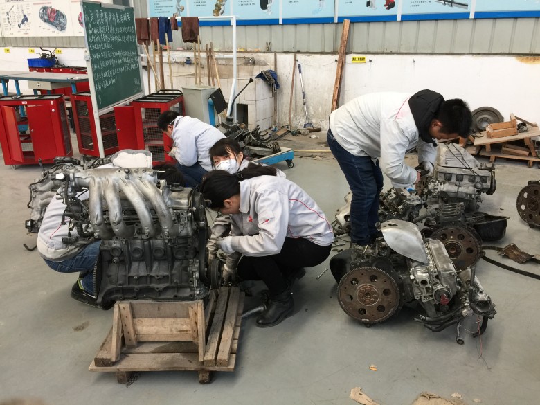 课程组还在汽车拆装与调整实训中心进行了第一轮的教学理念培训和技术培训。课程组成员通过实践行动导向教学法,形成了项目一和项目二课程实施的流程文件和所有教学资料文件;同时课程组成员分组对教学车辆(爱丽舍)进行了汽车发动机盖的拆装与调整、前翼子板的拆装与调整、前保险杠的拆装与调整、前部灯光总成的拆装与调整、后备箱盖的拆装与调整、发动机冷却系统总成的拆装与调整、空调系统总成的拆装与调整、制动系统总成的拆装与调整、发动机总成的拆装与调整、变速器总成的拆装与调整等项目的技术培训,通过技术培训,进一步强化了教师实践动手能力,规范了实践教学标准。