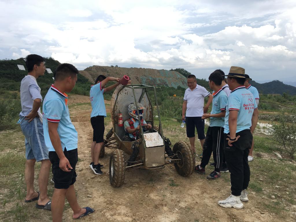 据悉,为全力备战巴哈大赛,tyc122cc太阳成集团自三月份就组建了参赛团队,利用课外时间研讨、设计、制作、组装赛车,撰写项目计划,一遍一遍地修改打磨。暑期,为了抓紧时间备赛,13名参赛同学主动留校训练,在指导教师周恒带领下,克服天气热、条件差等困难,在校外练车场不断试验完善赛车性能。