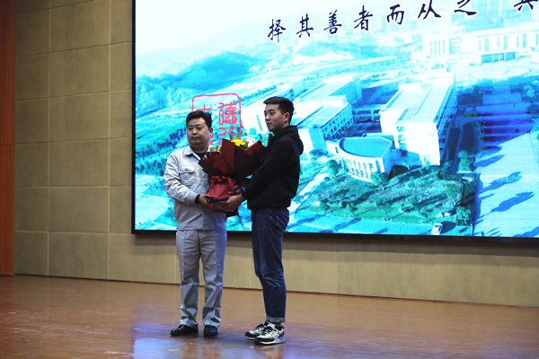“张龙老师身上所体现的爱岗敬业的职业道德、不断学习的工作态度和敢为人先的生活追求,是我们学习的榜样。”“在这个飞速发展的时代里有无数的诱惑,正因为此,我们更要坚定自己的内心,用一颗恒心去铸造出一颗匠心,像张龙老师一样,实现自己的理想和价值”......湖北亨运集团汽车销售服务有限公司员工、2018届毕业生吴永恒、2019级员工潘昌越分别以《我眼中的张龙老师》、《以热爱为初心 用恒心铸匠心》为题进行了主题宣讲,分享了学习张龙老师事迹的感想体悟。