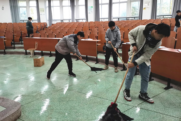 通过一个多小时的辛苦劳动,同学们终于将各自负责的教室打扫干净。看着干净整洁的教室环境,同学们表示虽然辛苦但很值得。此次大扫除活动充分响应了校团委的“3.5”学雷锋主题活动精神,不仅净化了学习环境,展现了tyc122cc太阳成集团学子朝气蓬勃、奋发有为的精神面貌,更让同学们懂得学习和发扬学习雷锋无私奉献、为人民服务的精神,也更深一步地了解到“环境卫生保护,人人有责”的深刻道理。