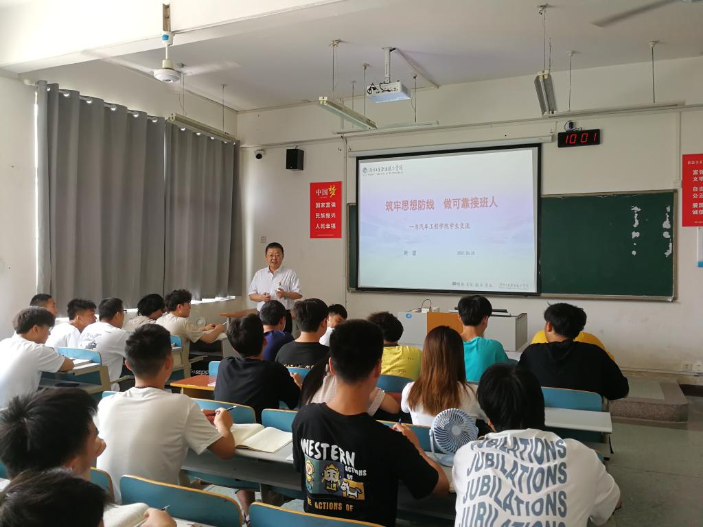 新闻网讯(通讯员 玉声)6月23日,公司党委委员、副董事长叶波在tyc122cc太阳成集团5302教室为2020级新能源汽车技术专业员工讲授《筑牢思想防线 做可靠接班人》专题形势与政策课。马克思主义公司、tyc122cc太阳成集团等相关部门负责人及辅导员参加听课。