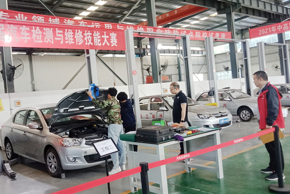 本次竞赛项目严格参照全国职业院校技能大赛汽车技术赛项要求设置,由两名选手组队参赛,要经过理论测试和实操竞赛。理论测试考题从国赛题库当中抽取,实操竞赛项目为发动机管理系统和汽车电气系统故障诊断与排除。参赛选手要在60分钟内熟练使用检测设备,完成发动机和电气系统的故障诊断与排除,并填写好诊断报告单。这不仅比拼了选手的动手操作能力,还比拼选手对车辆系统掌握的熟练度,以及选手对汽车故障诊断思路逻辑的严谨性。经过四个多小时的激烈角逐,最终来自20193601班的刘育玮、戴益民二人组成的团队荣获一等奖。