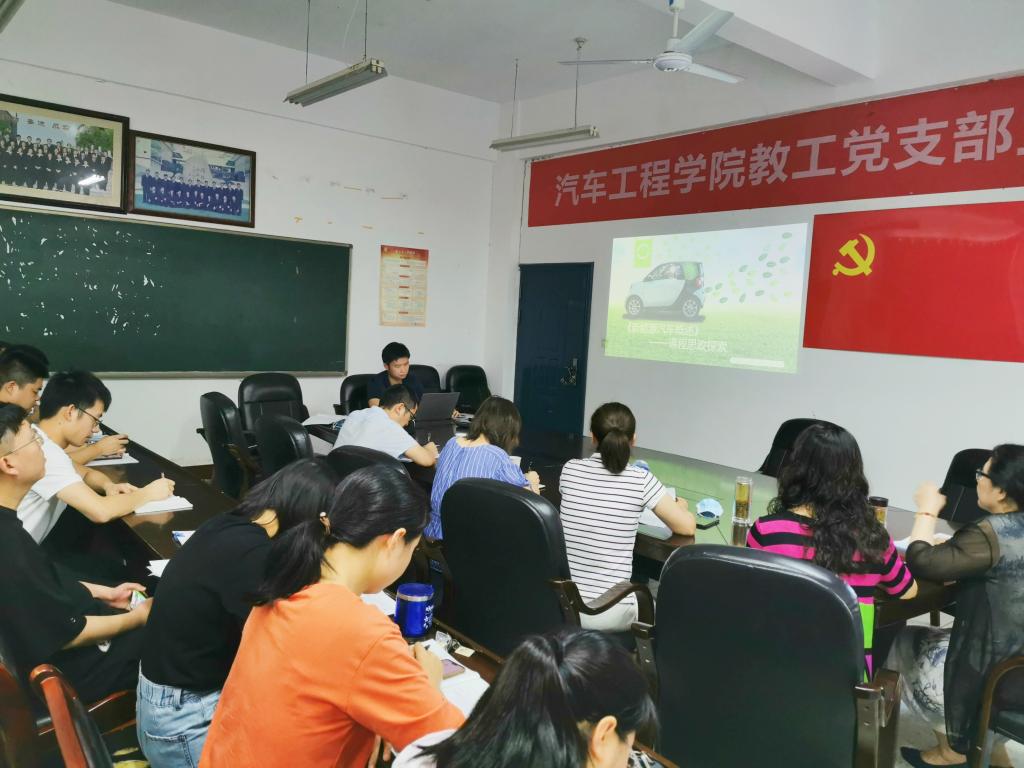 在课程思政学习研讨中,《新能源汽车概述》任课教师王麒睿汇报了此门专业基础课的课程思政设计和实施情况,他从总体设计思路、思政元素选择和教学内容安排等方面进行了介绍。何玲玲肯定了王麒睿老师所做的探索和尝试,认为该门课程已打下较好的课程思政基础,并结合其在《应用文写作》建设省级课程思政项目中的经验,进行了详细的点评指导。冯东认为此项研讨活动恰如其时,当前课程思政已成为各级教学能力大赛的重点内容之一,老师们要高度重视并积极参与进来,精心设计并做好专业课程的课程思政设计和实施。张玲对研讨活动做了总结,希望老师们以实际行动落实习近平总书记关于教育的重要论述,加强对课程思政的研究和学习,做好顶层设计,以师德师风建设赋能课程思政建设,同时要强化典型经验推广,带动更多师生加入到课程思政建设之中。
