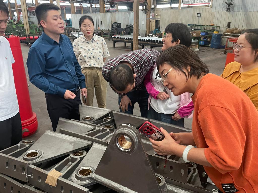 在湖 北万邦液压装备有限公司,公司教师听取了企业负责人张建亮关于企业生产经营、科技研发、技术难题等情况介绍,参观了生产车间。对于企业提出的产品轻量化、装备自动化、数字化赋能等技术需求,教师团队给予了现场指导,并与公司技术人员进行了深入交流和技术对接,表示将根据企业的需求后续跟进服务,助力企业创新发展和技术进步。交流活动结束时,企业负责人深表满意和感谢,并就后续校企合作达成意向,接下来将邀请公司教师对企业员工开展培训和技术指导。