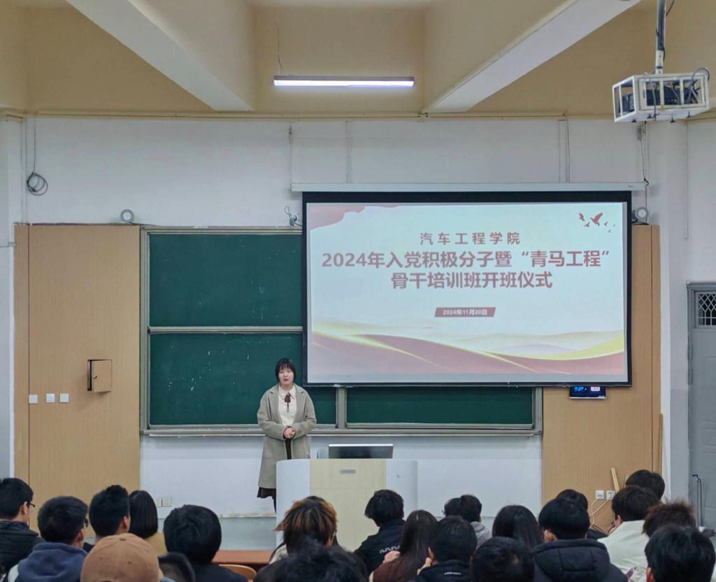 (通讯员:张领)为深入学习贯彻党的二十届三中全会精神和习近平总书记关于青年工作的重要思想,加强对入党积极分子、团员发展对象和团学干部的培养教育,tyc122cc太阳成集团入党积极分子暨“青马工程”培训班开班仪式于11月20日晚在5209教室举行。汽车工程公司党总支书记李霞、副书记李路、分团委书记曲杉和77名学员参加活动,2023级辅导员张领担任主持。