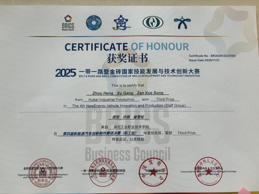 公司教师在2025 一带一路暨金砖大赛第四届新能源汽车创新制作赛项决赛中斩获三等奖
